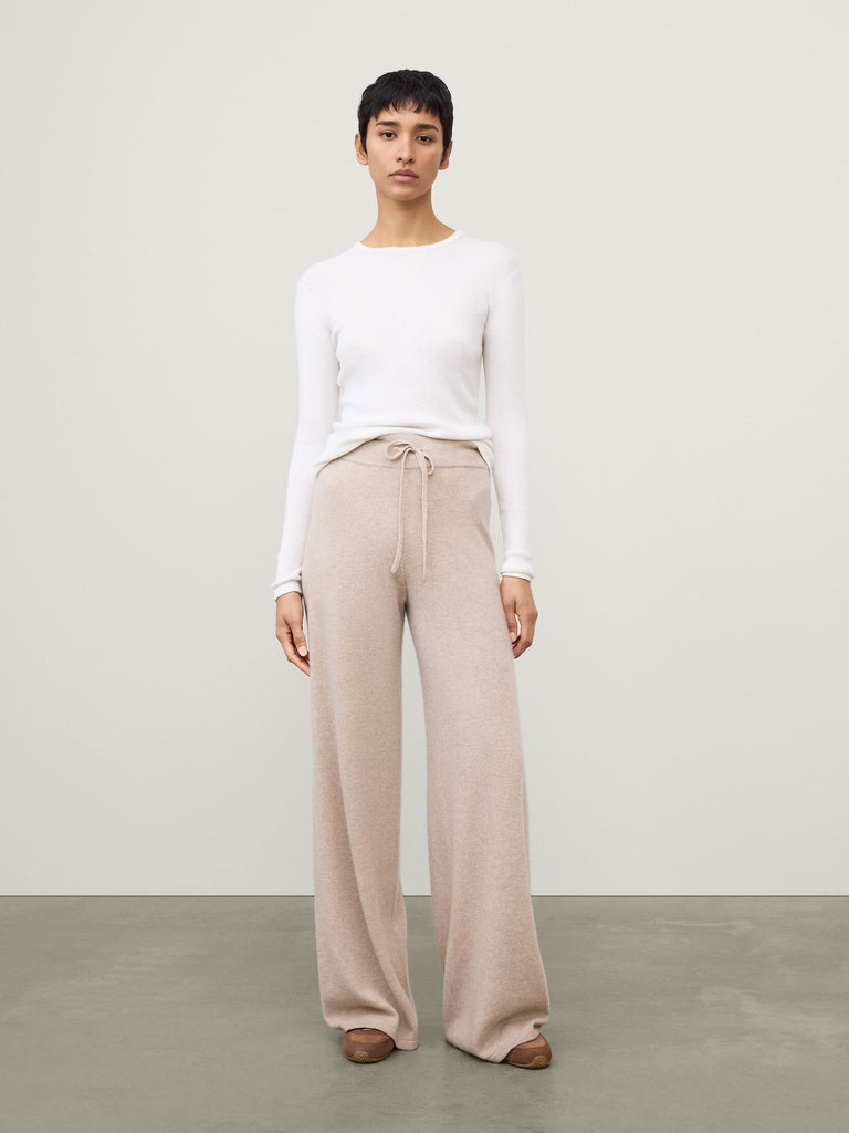 Sandy Sweater Sand | Lisa Yang | Beige high neck sweater in 100% cashmere