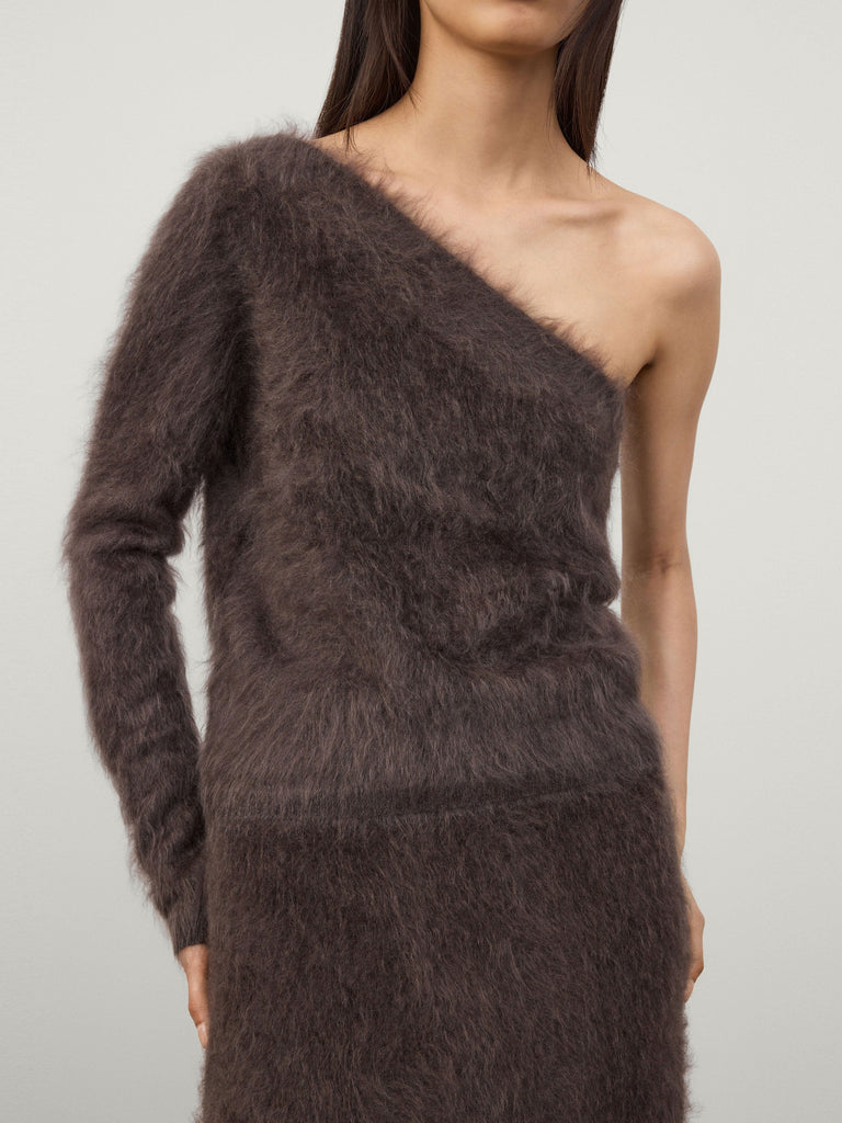 An asymmetric day-to-evening piece, the Dae top is crafted in our signature brushed cashmere with a supremely soft, cloud-like hand. The fitted, one-shoulder silhouette features wrist-length sleeves which accentuate the feminine frame.