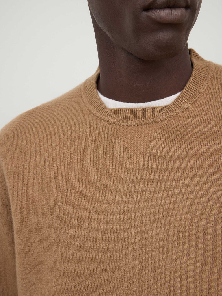 A sweatshirt-inspired knit, the Edmond sweater is crafted in knitted double face cashmere for structure and shape. The regular fit silhouette features a round neck with sporty rib details, full-length sleeves and a ribbed hem.