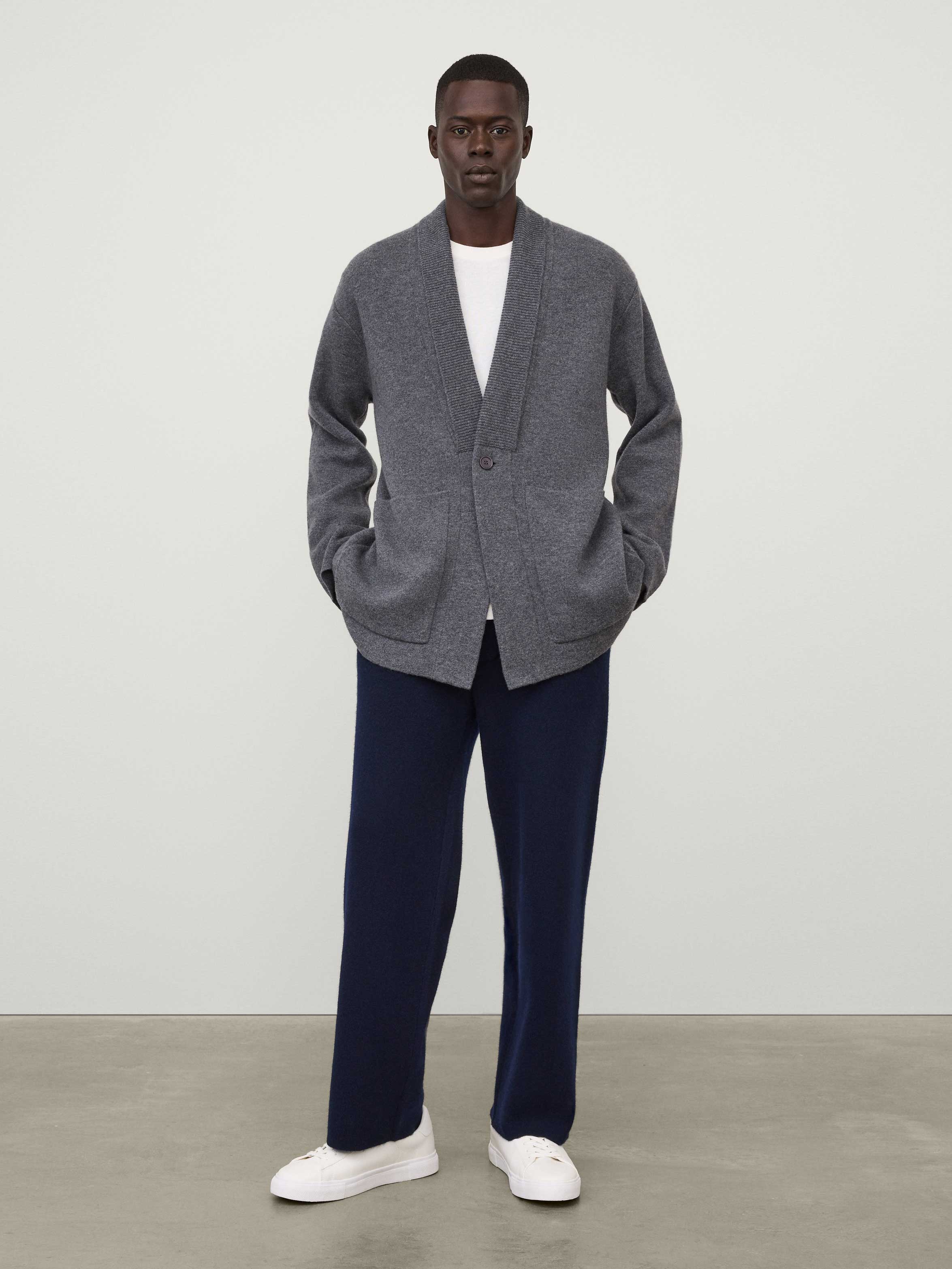 A wardrobe investment, the Lance cardigan is crafted in our densely knitted double face cashmere. The regular fit, slightly structured silhouette is punctuated by a shawl collar, a front button closure, full-length sleeves, patch pockets at the front and ribbed trims.