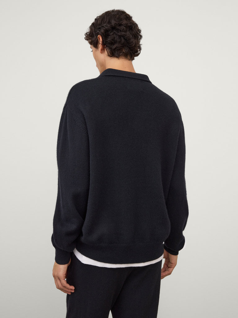 A new polo shirt knit, the Rufus sweater is knitted in our signature mid-weight cashmere with a light and lofty feel. The regular fit silhouette features a polo shirt neck, full-length sleeves and ribbed trims.