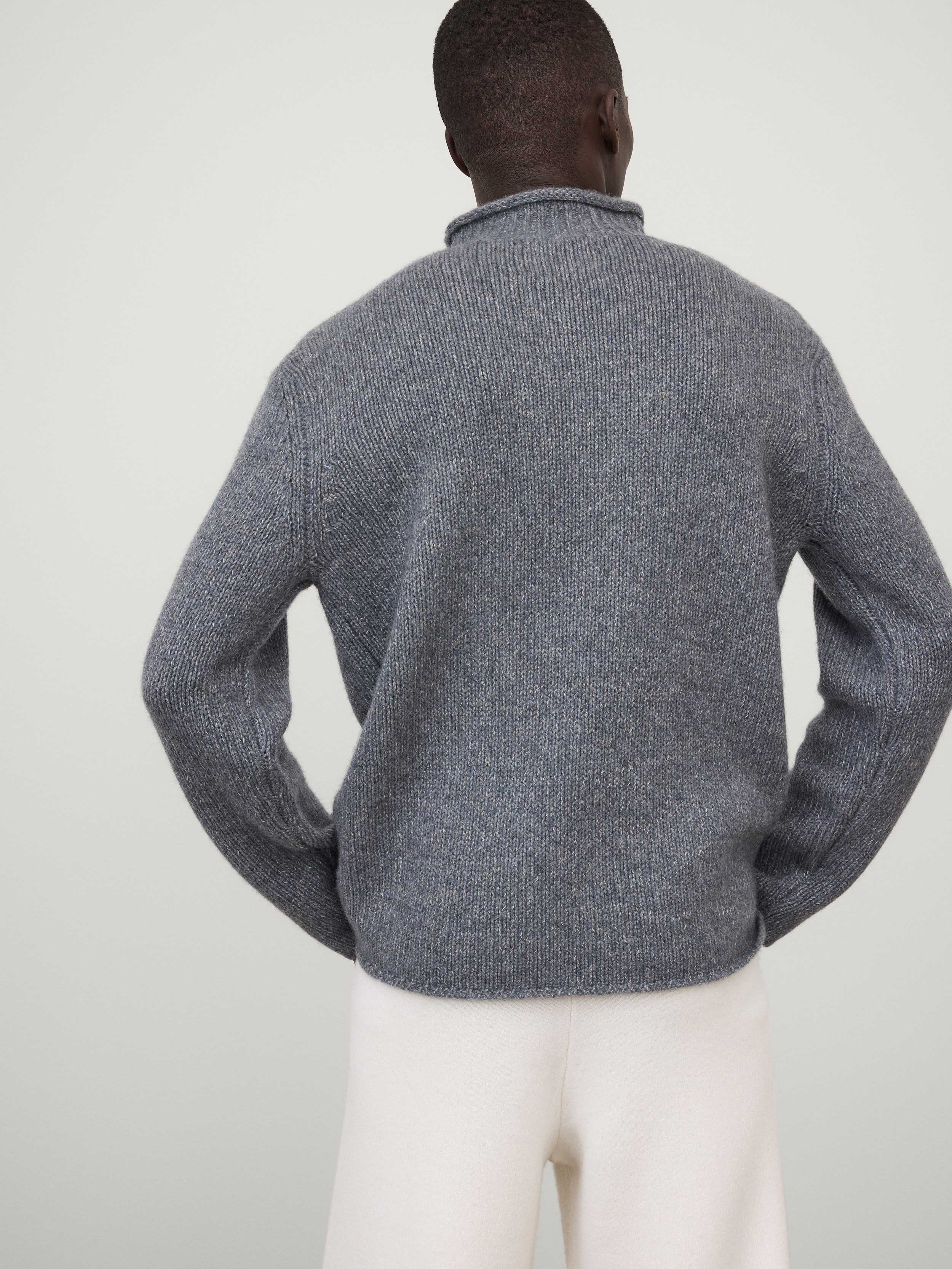 A directional turtleneck, the Sylvan sweater is crafted in heavy knit cashmere with a new, digitally printed yarn – a specialist technique that creates a melange-like effect with an organic look and a depth of tone. The regular fit silhouette features a mock turtleneck with rolled edges, full-length sleeves and a clean hem.