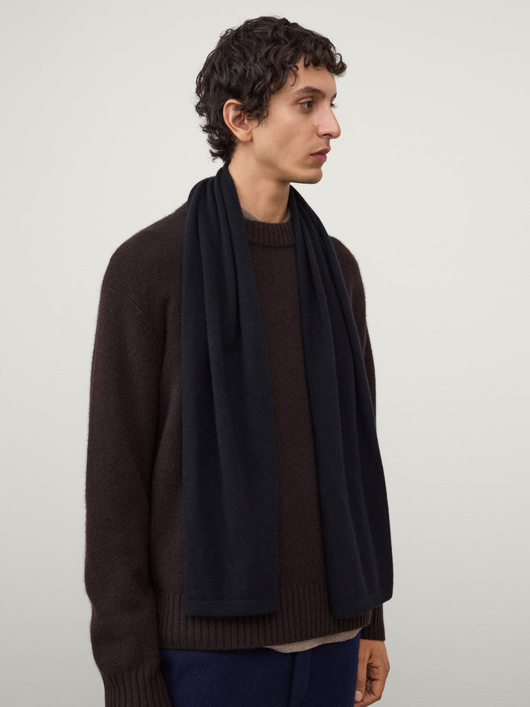 A transeasonal companion, the Viktor scarf is knitted in our mid-weight cashmere with a supremely soft hand feel. The rectangular silhouette is subtly trimmed with a flat tubular panel.