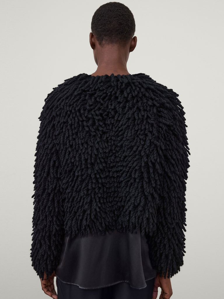 A sumptuous outer layer, the Bon cardigan is crafted in super chunky cashmere with intricate fringing that is finished by hand – a cashmere take on fur. The regular fit, hip-length silhouette features a round neck, a centre front hook closure and full-length sleeves.