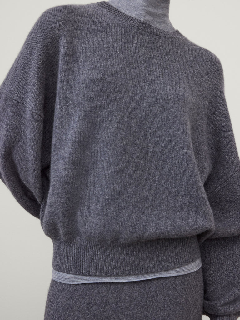 A rounded silhouette, the Veira sweater is crafted in our staple mid-weight cashmere for transeasonal wear. The relaxed fit, hip-length silhouette features a round neck, dropped shoulders, full-length sleeves and a ribbed hem.