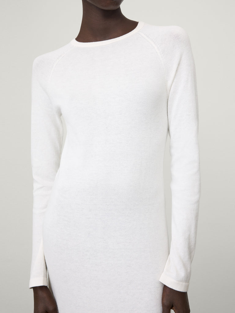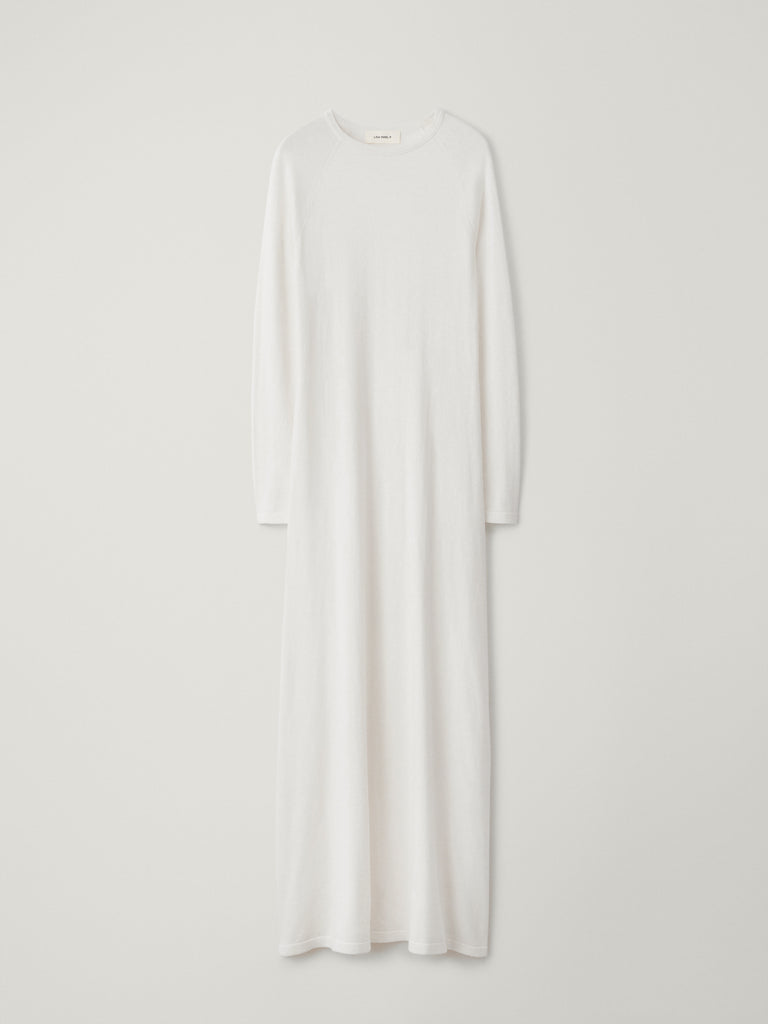 A dress with maxi proportions, the Eliora dress is crafted in our fine knit cotton cashmere composition suggestive of jersey. The regular fit piece skims the body in a slightly A-line silhouette that feels both light and enveloping, and features a crew neck, full raglan sleeves and a floor-gracing skirt with ribbed trims.