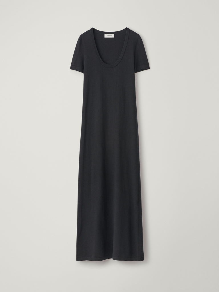 A draping silhouette, the Minne dress is crafted in our fine knit cotton cashmere composition – a sumptuous take on jersey. The regular fit, maxi length silhouette features a deep scoop neck, short sleeves, a tubular hem and ribbed trims.