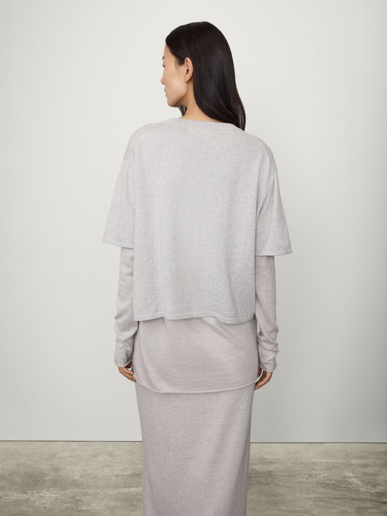 A jersey-inspired piece, the Rubie T-shirt is crafted in our new composition combining the softness of cashmere and the breathability of cotton. The slightly wide and cropped silhouette is complete with a round neck and short sleeves.