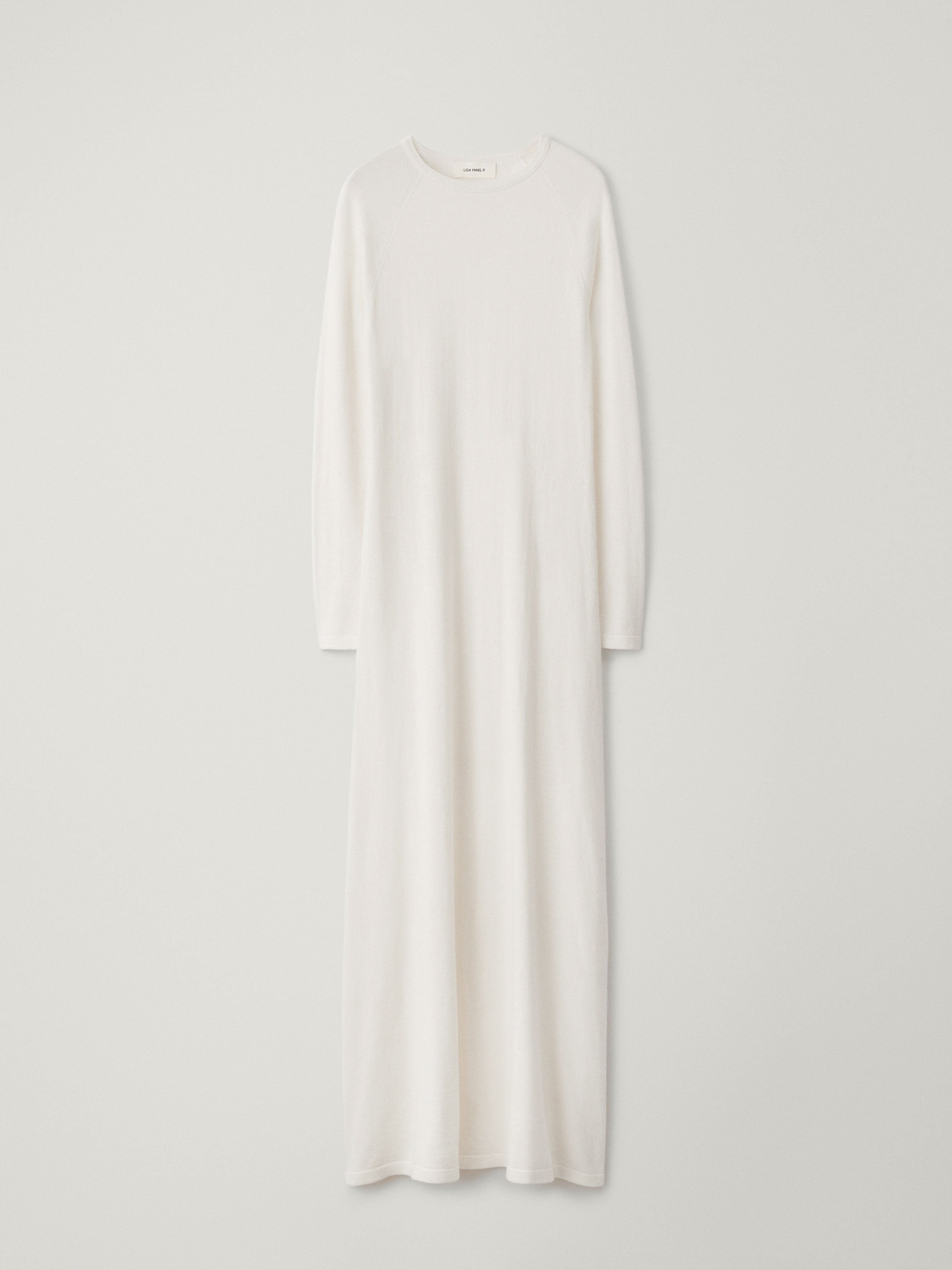 A dress with maxi proportions, the Eliora dress is crafted in our fine knit cotton cashmere composition suggestive of jersey. The regular fit piece skims the body in a slightly A-line silhouette that feels both light and enveloping, and features a crew neck, full raglan sleeves and a floor-gracing skirt with ribbed trims.