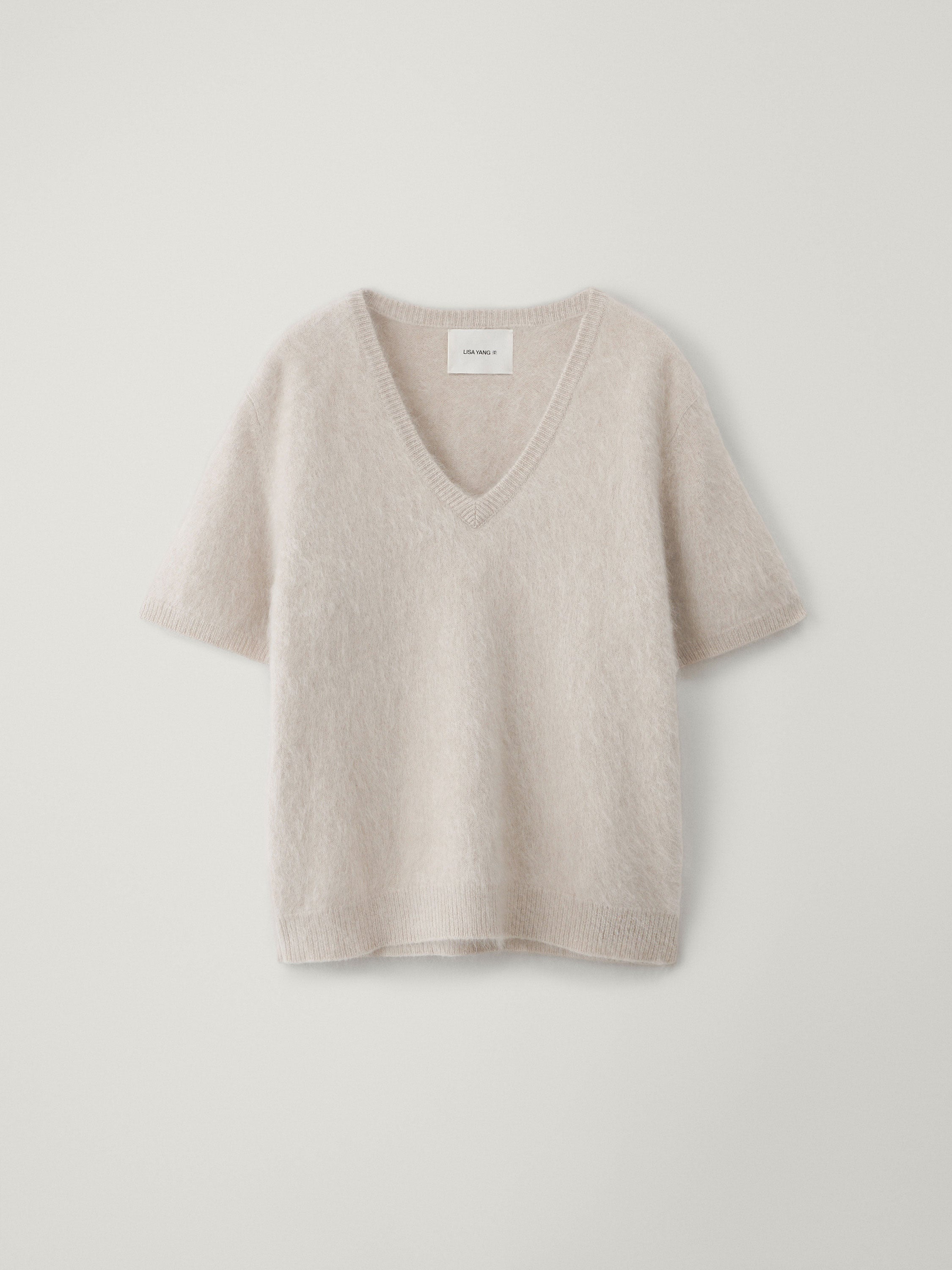 A brushed cashmere sweater, the Lovisa T-shirt is cloud-like in texture with a light and lofty feel. The regular fit silhouette is framed by a v-neck, short sleeves and a straight hem, neatly finished with ribbed edges.