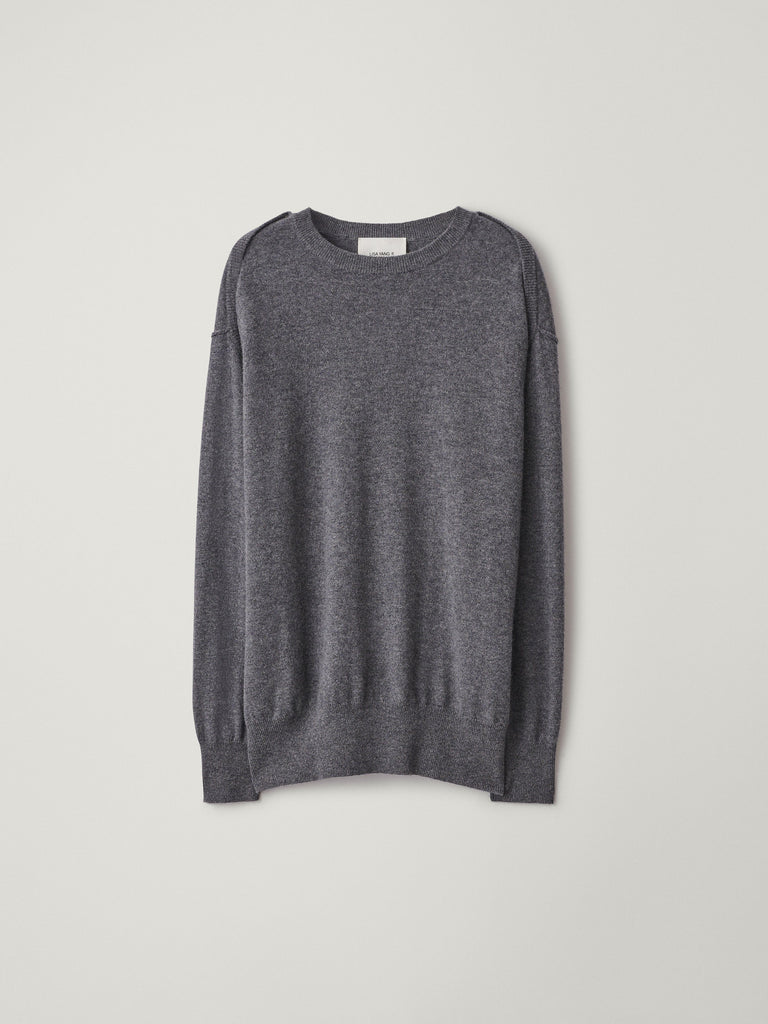 A novel silhouette, the Othelia sweater is crafted in mid-weight cashmere with an intricate construction. The relaxed fit, hip-length silhouette features a round neck and ribbed trims throughout. The sleeves are suspended from the nape and can be styled in various ways – wrapped around the neck or draped loosely down the arms.