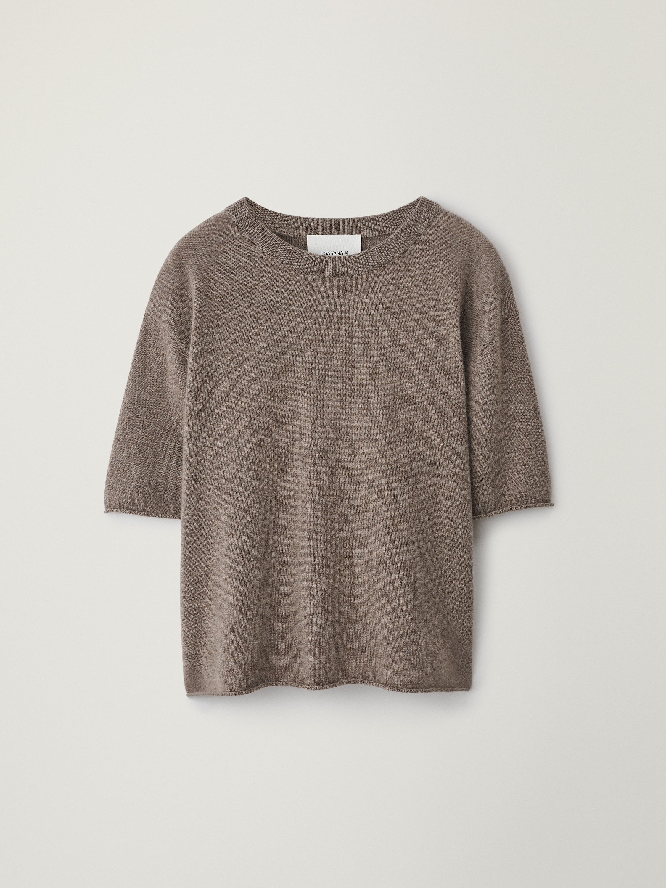 An everyday layering piece, the Cila T-shirt is crafted in soft, mid-weight cashmere for year-round wear. The slightly wide and cropped silhouette is framed by a crew neck, dropped shoulders and short sleeves, with a rolled hemline which crops at the hip.