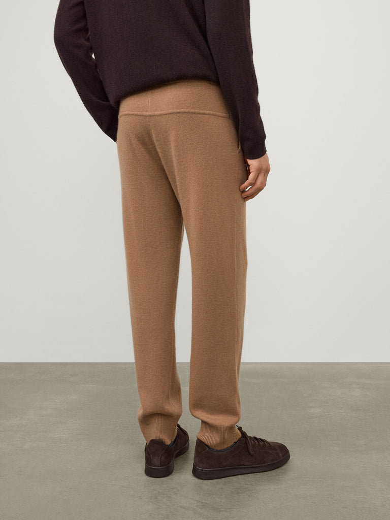 A sporty, casual silhouette, the Beaumont trousers are knitted in our signature mid-weight cashmere for transeasonal wear. The regular fit silhouette features an elasticated waistband with a hidden drawstring, a mock fly, side pockets, a back yoke detail, full-length legs and ribbed trims.