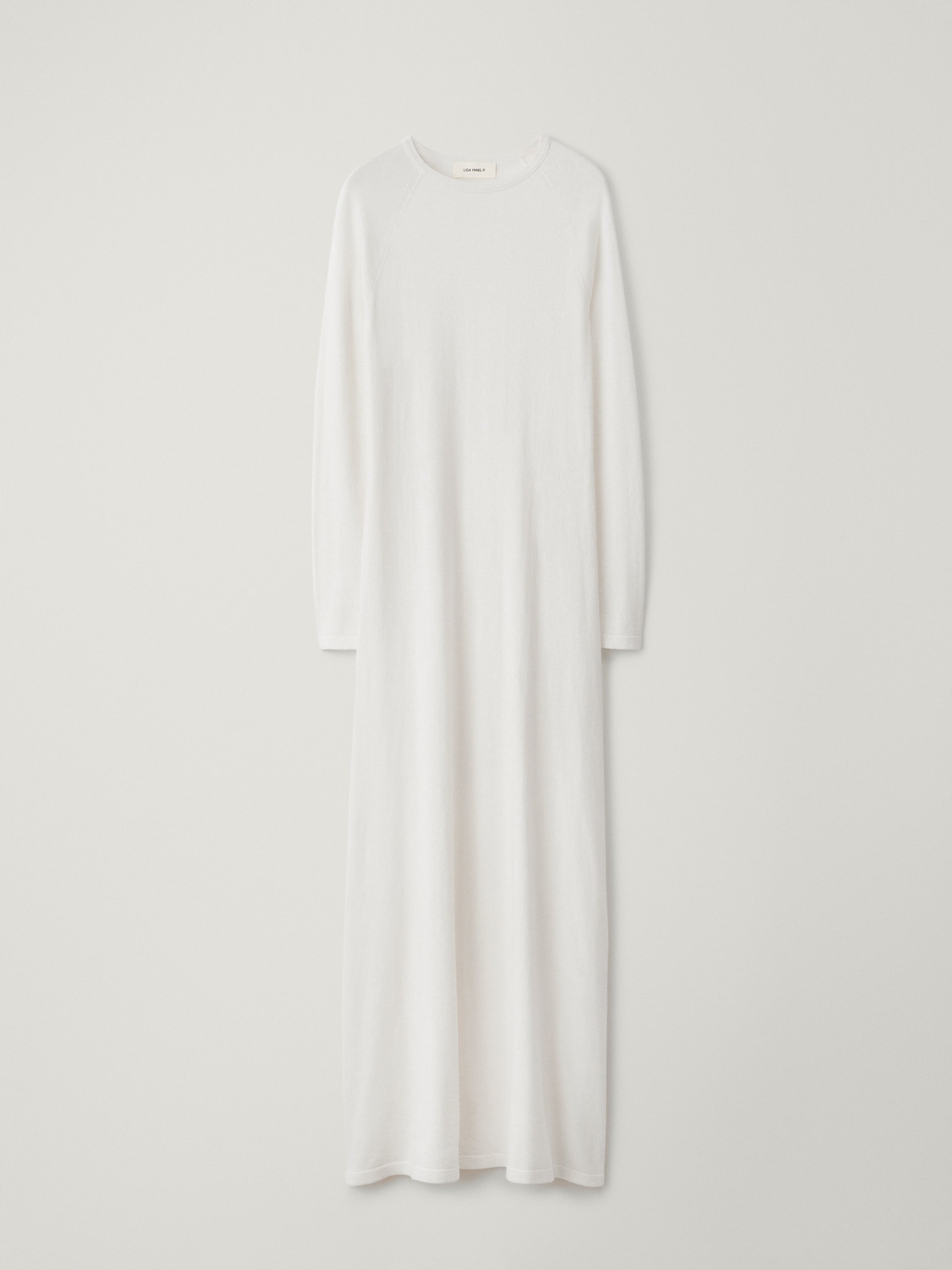 A dress with maxi proportions, the Eliora dress is crafted in our fine knit cotton cashmere composition suggestive of jersey. The regular fit piece skims the body in a slightly A-line silhouette that feels both light and enveloping, and features a crew neck, full raglan sleeves and a floor-gracing skirt with ribbed trims.