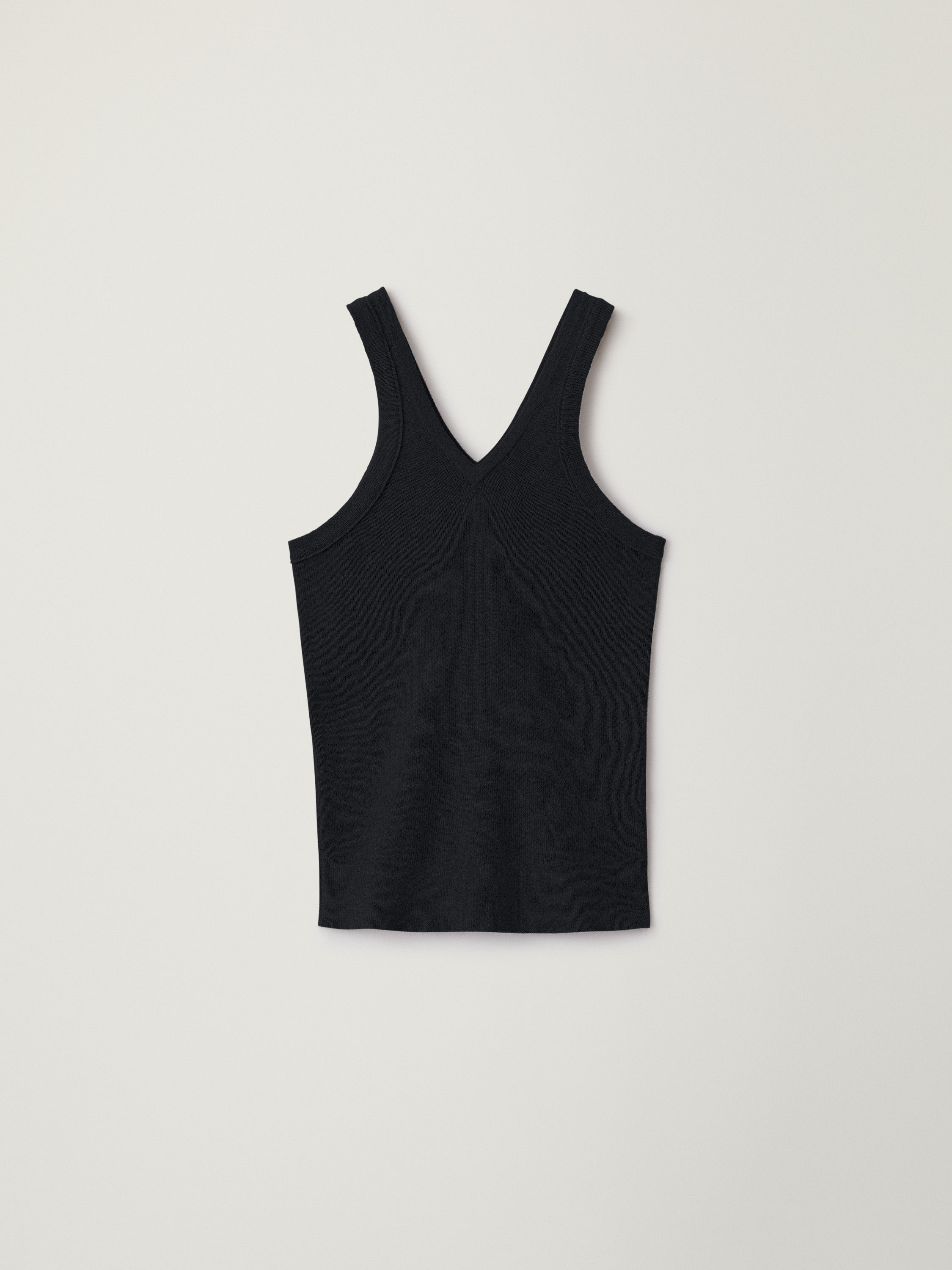 A bodycon-inspired tank, the Jai top is knitted in our cotton cashmere composition with a fine single rib pattern. The fitted silhouette is designed to enhance the feminine form, shaped by a racer front and finished with ribbed trims and a cropped full needle hem.