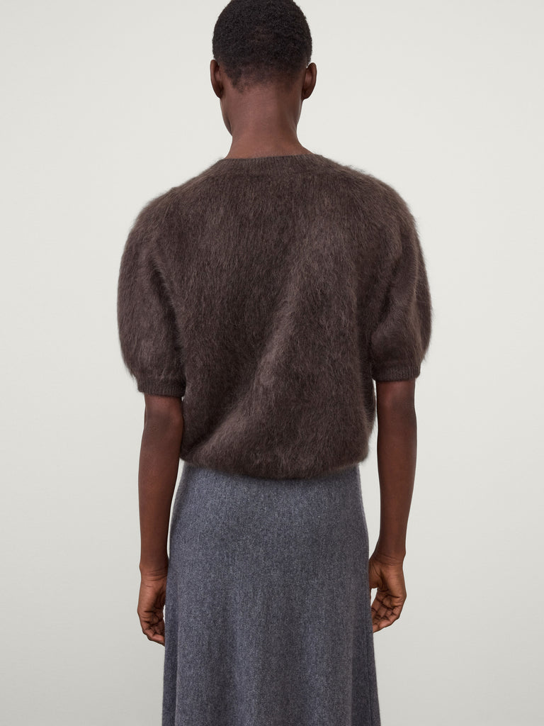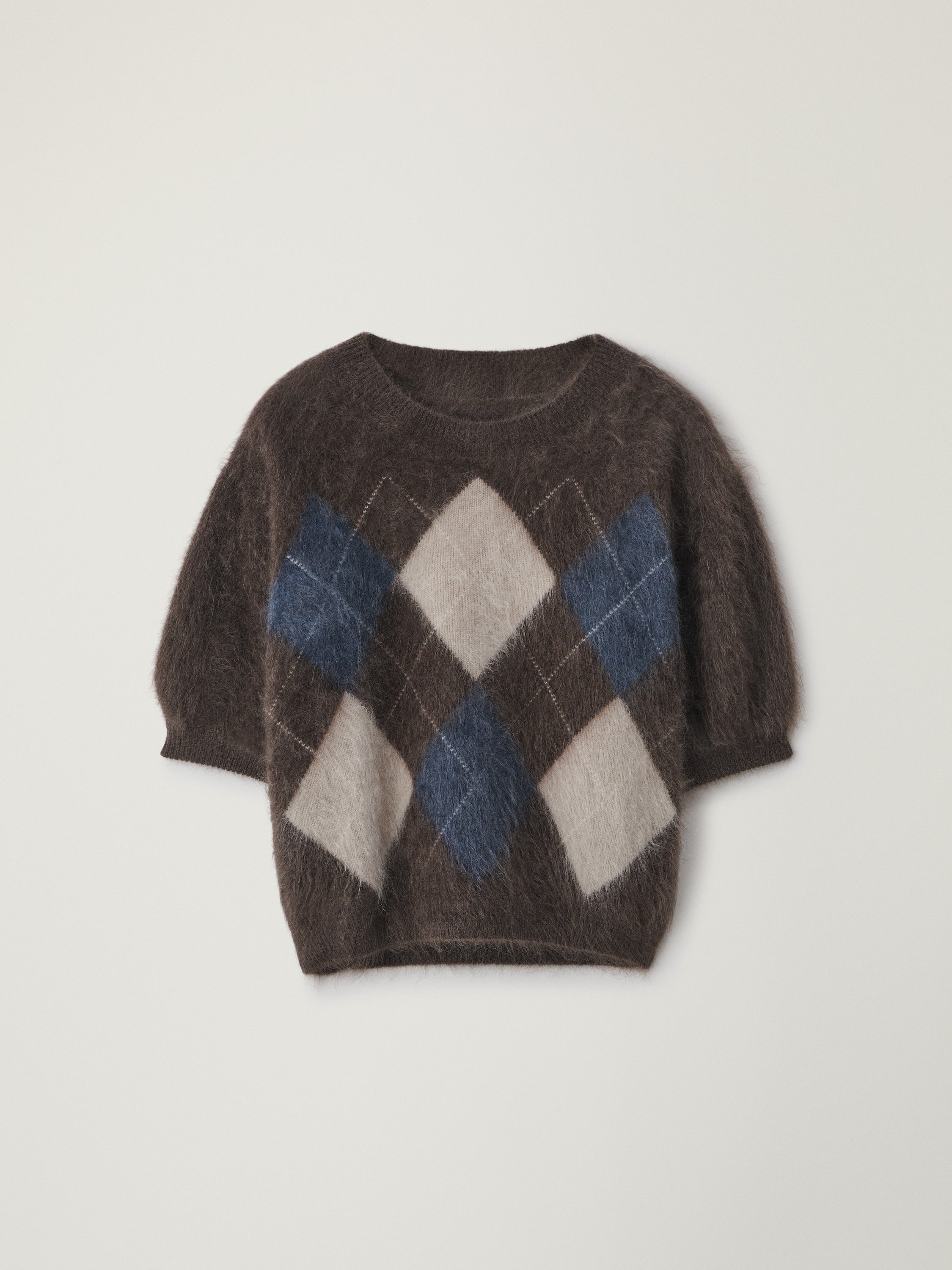 A sumptuous top with texture, the Juniper sweater is knitted in our signature brushed cashmere with a graphic Argyle pattern. The generous fit, slightly cropped silhouette is complete with a crew neck, dropped shoulders and short sleeves.