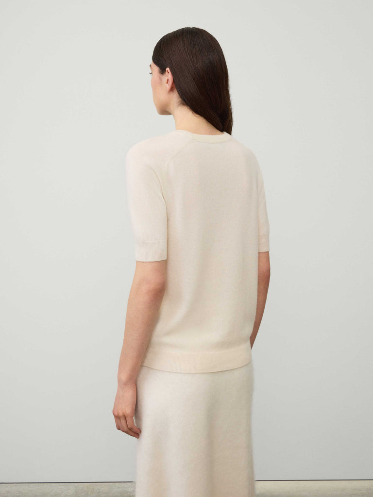Made memorable by it’s ranglan sleeves, classic crew neck, and streamlined silhouette, Kenza is a fundamental wardrobe piece. Ribbed trims highlights the neckline, cuffs and hem and wether styled with a trouser or skirt it gives off a timeless look.