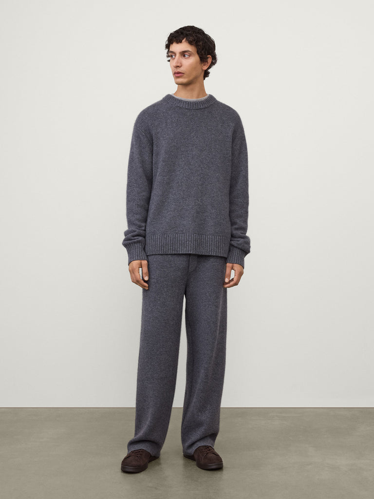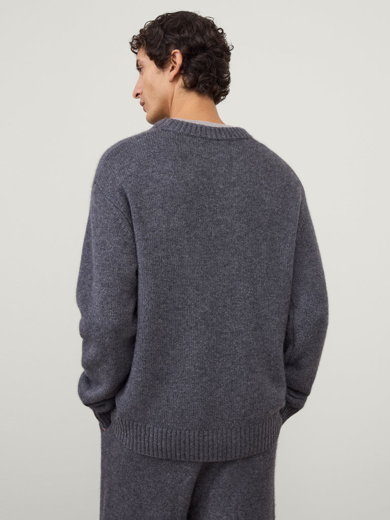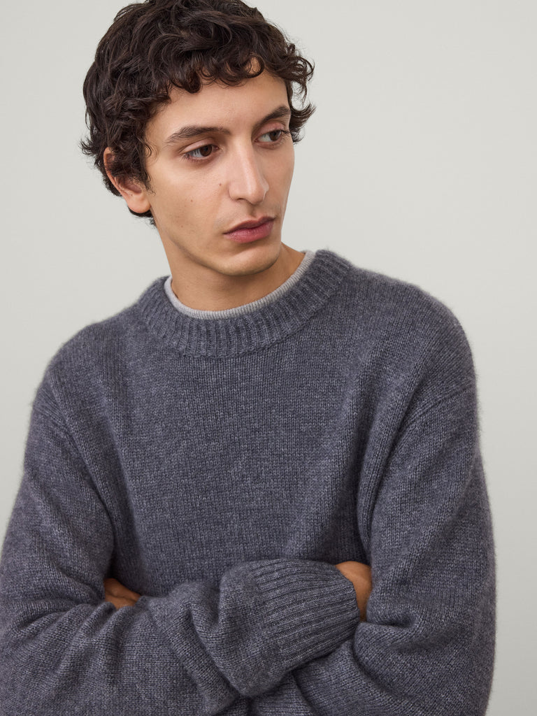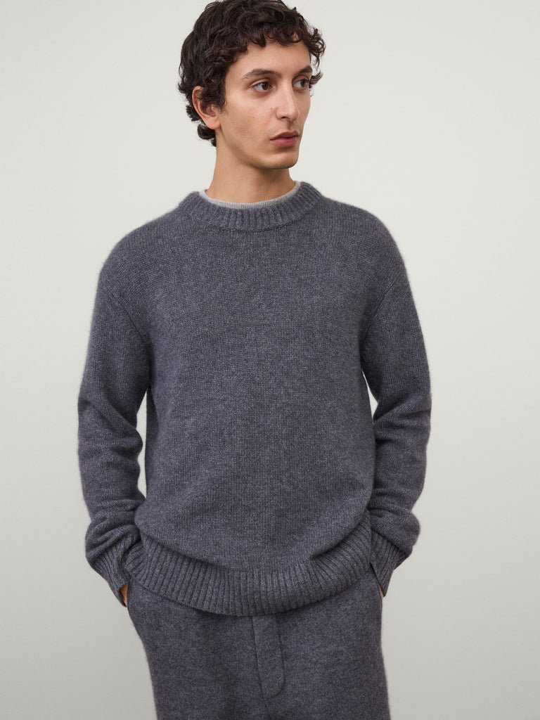 A signature crewneck, the Kristian sweater is crafted in rich, heavy knit cashmere for warmth and structure. The straight silhouette is punctuated by a chunky ribbed neckline, dropped shoulders, full-length sleeves and ribbed trims as a subtle design detail.