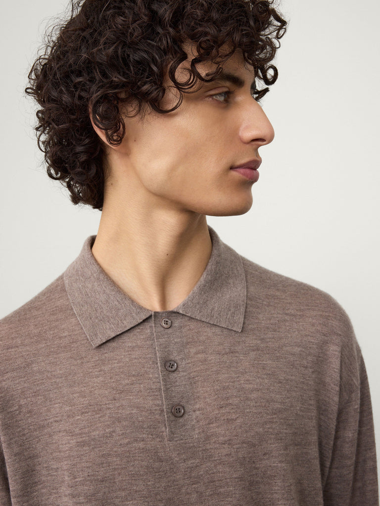 A polo shirt sweater, the Liam sweater is crafted in our finest 18-gauge cashmere which makes it perfect for layering. The regular fit silhouette features a collared neckline with a buttoned placket, full-length sleeves and a tubular hem.