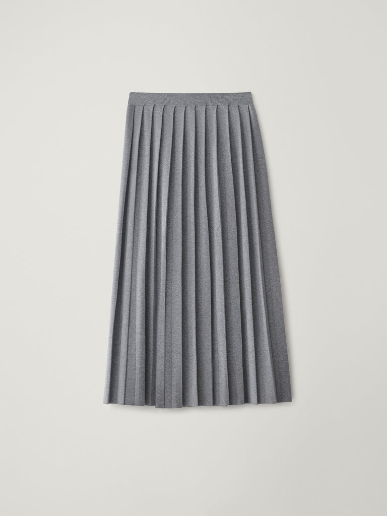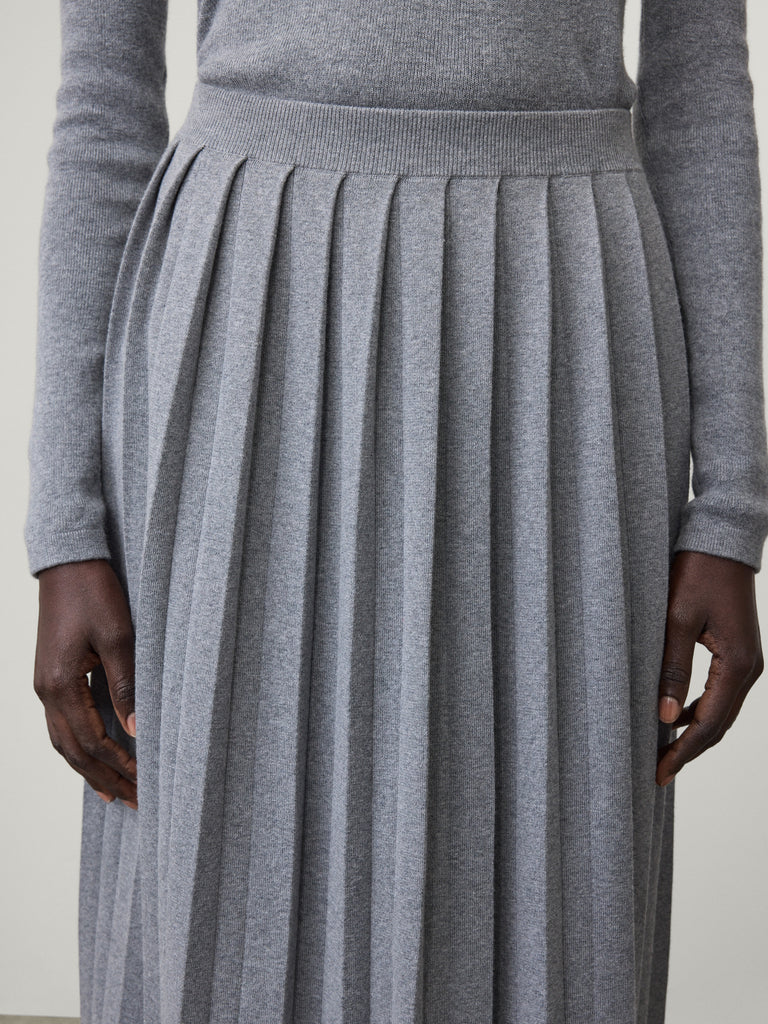 A pleated piece of knitwear, the Minda skirt is crafted in fine knit cotton cashmere with a novel plissé technique. The regular fit, 3/4 length silhouette is animated by graphic folds sculpted by pleating, and features a ribbed elasticated waistband and a clean hem.
