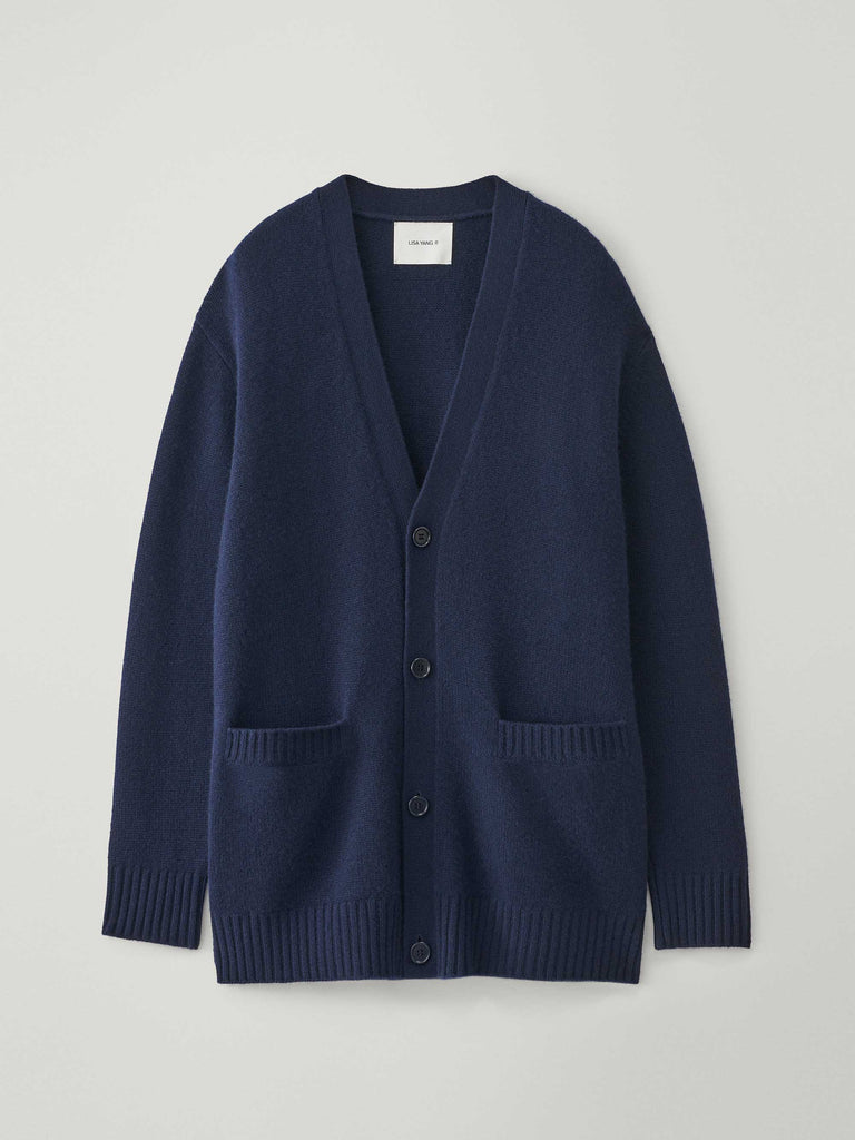 A trusted wardrobe fixture, the Wilson cardigan is crafted in our robust, heavy knit cashmere with a rich hand feel. The relaxed fit, longline silhouette features a v-neck, dropped shoulders, a button-down front, full-length sleeves, front welt pockets and ribbed trims.